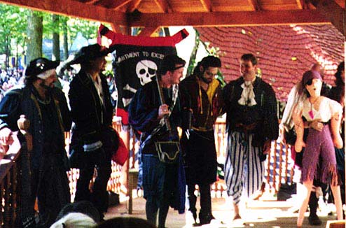 Last day of the 1995 Festival Season, and look who gets pressed into service? Skivvy, Louie, Jimmy the Crimp (retired), Jack Rackham (retired) and Stubbs are so excited to meet the fetchingly-dressed blowup doll, they look like they may actually lose bladder control.