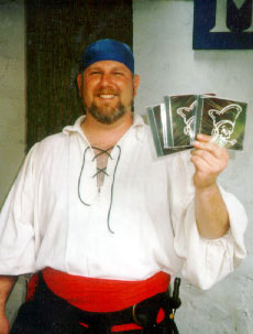Iron Pyrite Mike -- also known as Mike Heaney, all-around sweetie, sells our CDs and tapes with a smile (alright, you guys at the bar, stop serving him!) Photo by Ray Walden