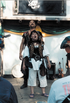 Watch yer back, Riley! Louis the Moor "backs up" Peg at the Gatehouse Stage.