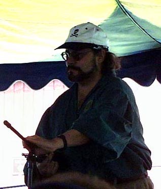 Craig "back off man... I'm a professional" Williams pretends that he knows what to do with the microphone stand.